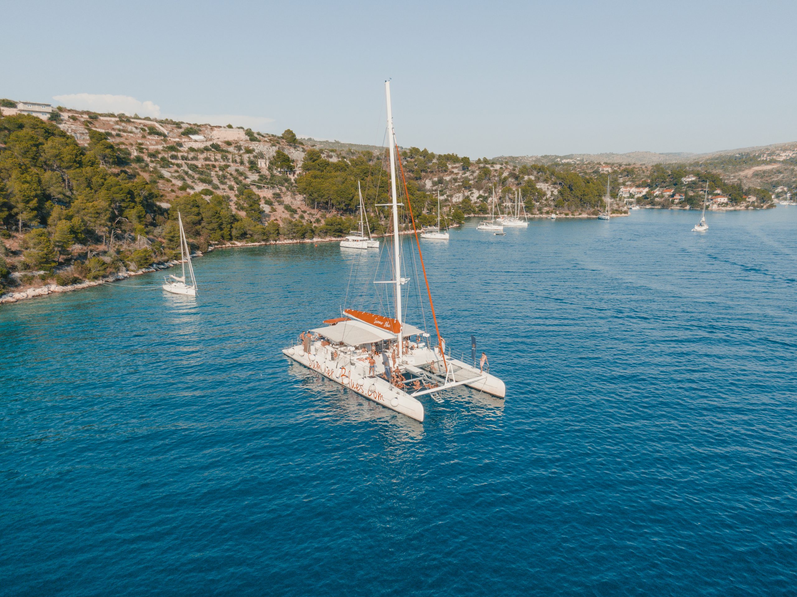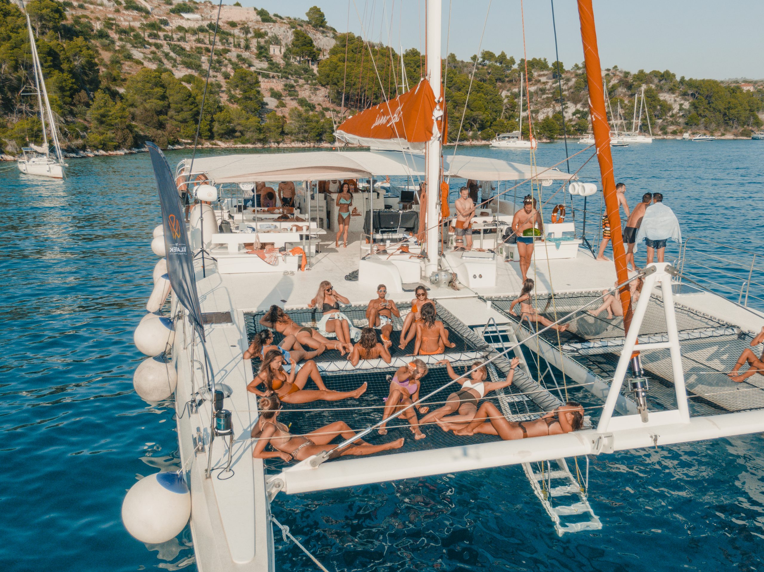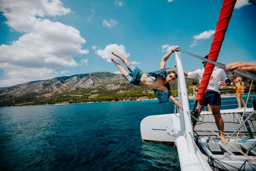 Enjoy a leisurely summer day sailing the mega-catamaran. Sunbathing above the waves to the famous Zlatni rat beach on Brac island with a cocktail party and DJ on board. Back home take a seat for the villa BBQ or take part in the cooking class, preparing to blast off with a super car to the casino roulette table.